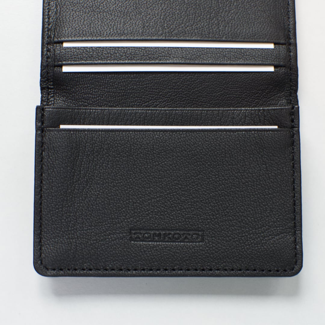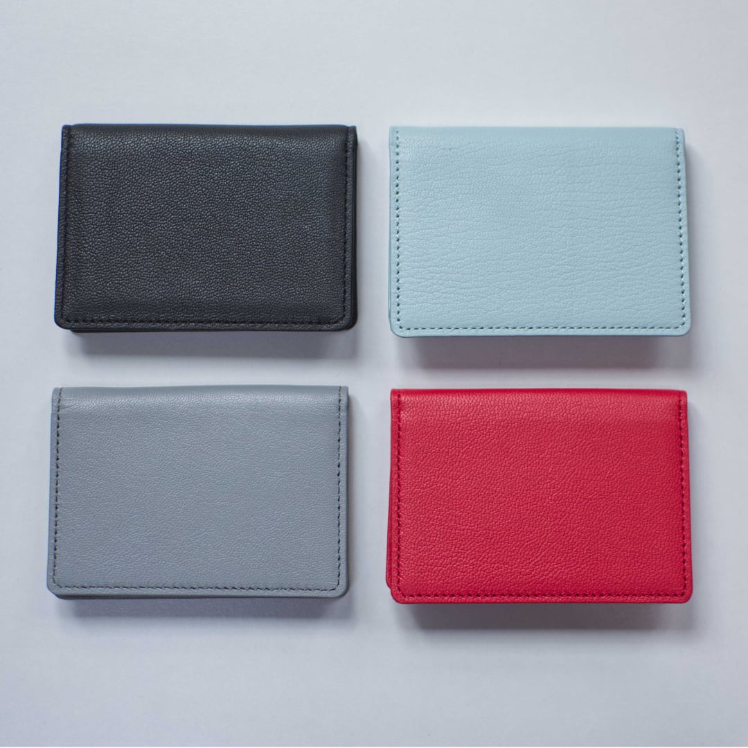 汚れに強い山羊革を使用した、柔らかな二つ折りの名刺・カードケースです。