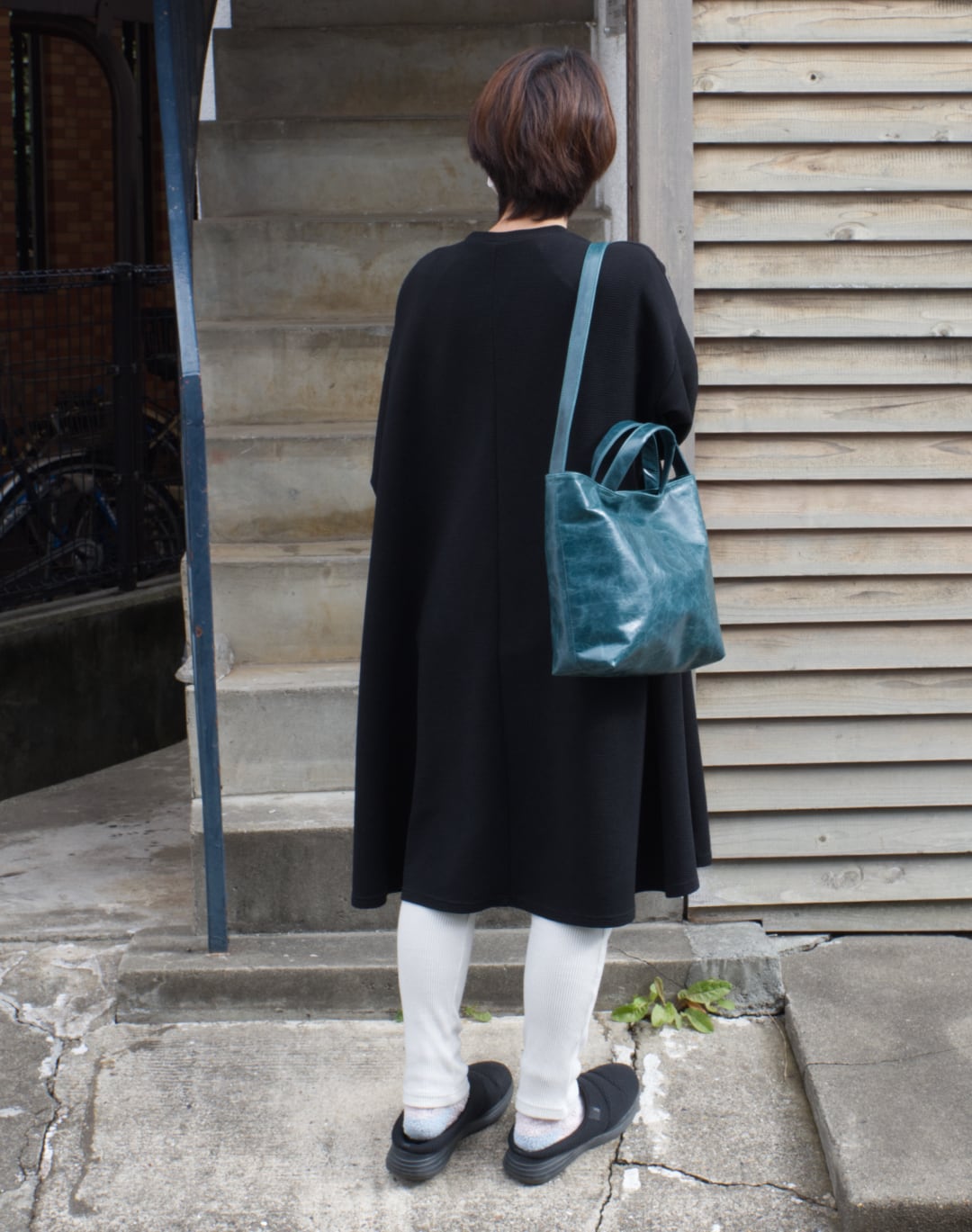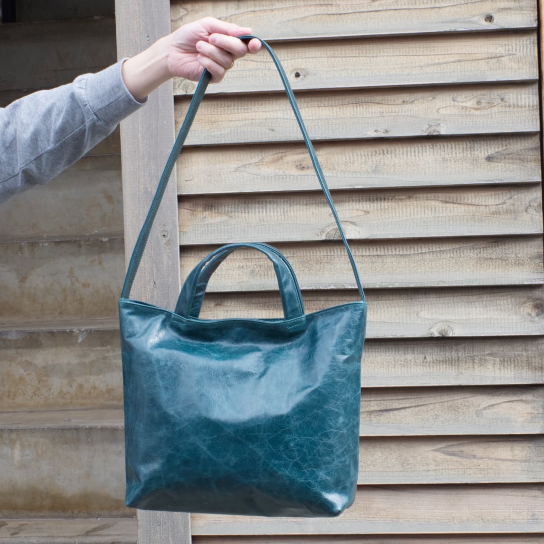 <限定1点>馬革プルアップ&クラッキングレザー SHOULDER TOTE -M- ブルーグリーン