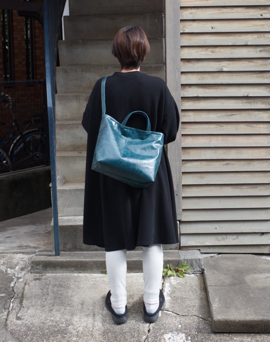 <限定1点>馬革プルアップ&クラッキングレザー SHOULDER TOTE -L- ブルーグリーン