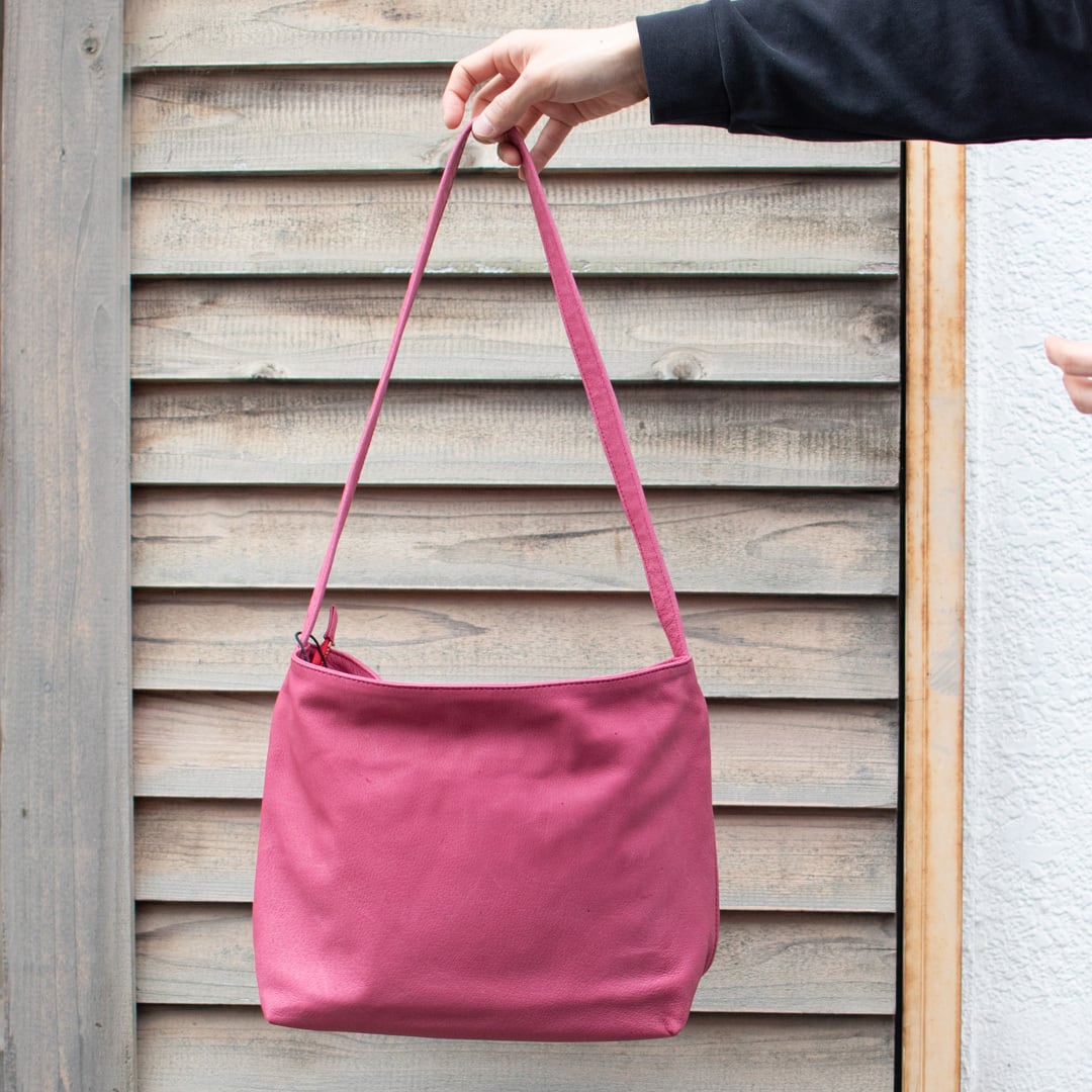 ピッグレザーのファスナーショルダーバッグです。